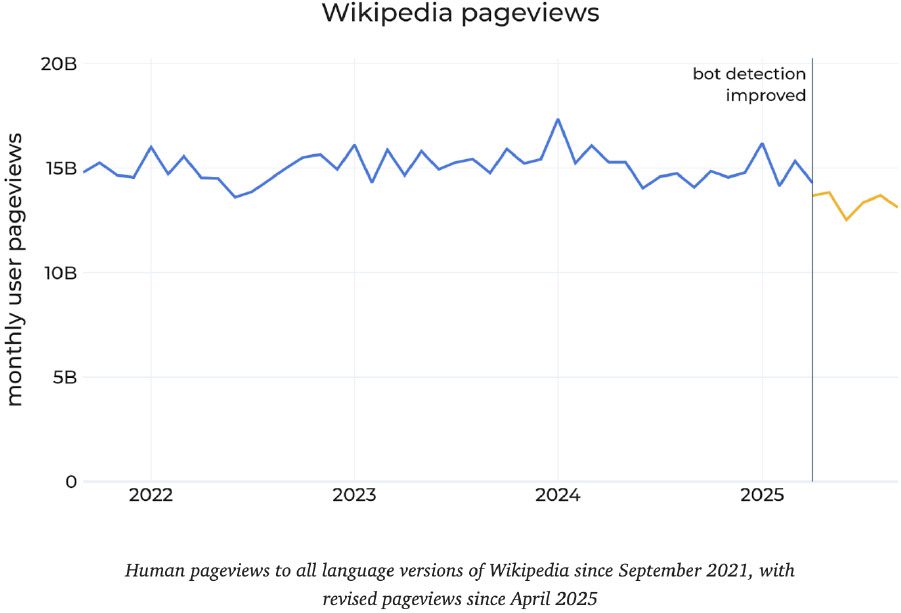Wikipedia has seen a decline of about 8% in human pageviews over the past few months compared to the same period in 2024. “We believe that these declines reflect the impact of generative AI and social media on how people seek information, especially with search engines providing answers directly to searchers, often based on Wikipedia content,” wrote Marshall Miller, Senior Director of Product at Wikimedia Foundation, in a blog post. To make sure third-parties responsibly access and reuse Wikipedia content at scale, Miller said Wikipedia is enforcing policies, developing a framework for attribution, and developing new technical capabilities to “carve a sustainable path forward for a healthy, open web.” |