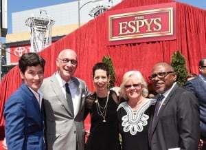 Los Angeles, CA – July 15, 2015 – Microsoft Theatre: Eliza Byard (l), John Skipper, Abbe Land, Selisse Berry and Paul Richardson on the ESPYS red carpet (Photo by Scott Clarke/ESPN Images)