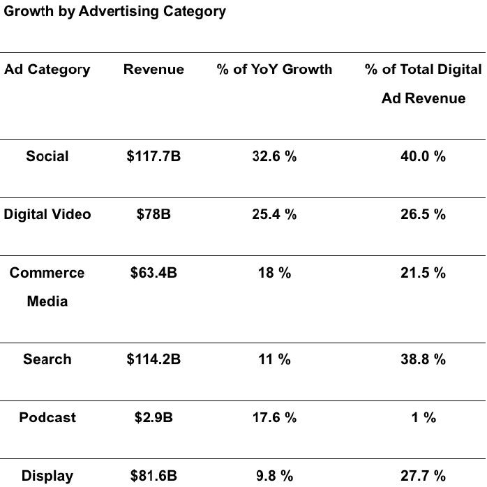 · Digital video grew to $78B (+25.4% YoY)