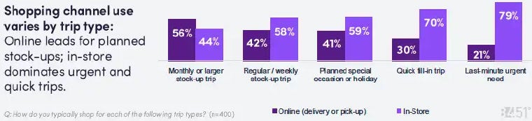 · Fill‑in and urgent trips are primarily in‑store experiences, with shoppers entering the store to solve an immediate need. |