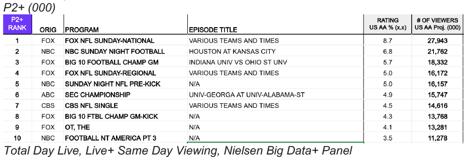 Nielsen Top 10 Telecasts for the Week of December 1 |